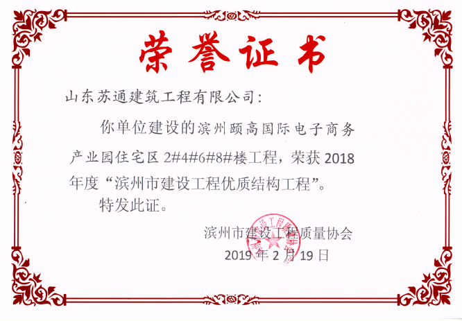 • 喜訊:我公司三位同志獲評(píng)濱州市建筑企業(yè)優(yōu)秀項(xiàng)目經(jīng)理稱(chēng)號(hào)